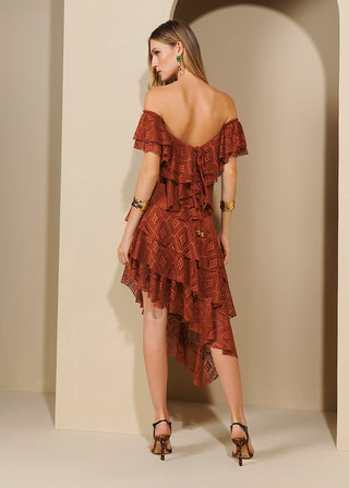Vestido Babados De Alças - Marron 221425MA09