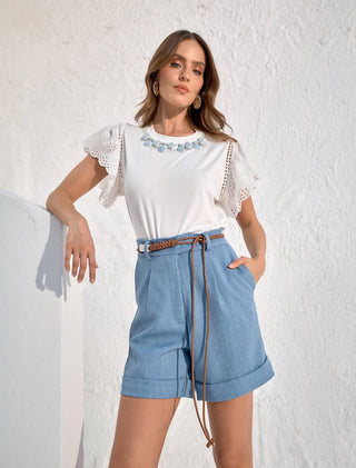 Short Alfaiataria C/ Cinto Trisse - Off White 241416BR03 OFF..