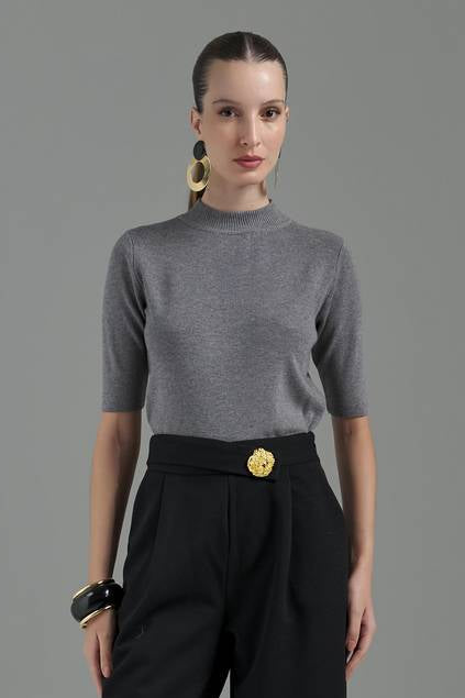A blusa de tricot com gola alta e mangas 3/4 é a tradução da elegância minimalista para o guarda-roupa feminino contemporâneo. Com caimento impecável que valoriza a silhueta, esta peça extremamente versátil transita com sofisticação entre o office look formal com alfaiataria e produções casuais chiques para o dia a dia.