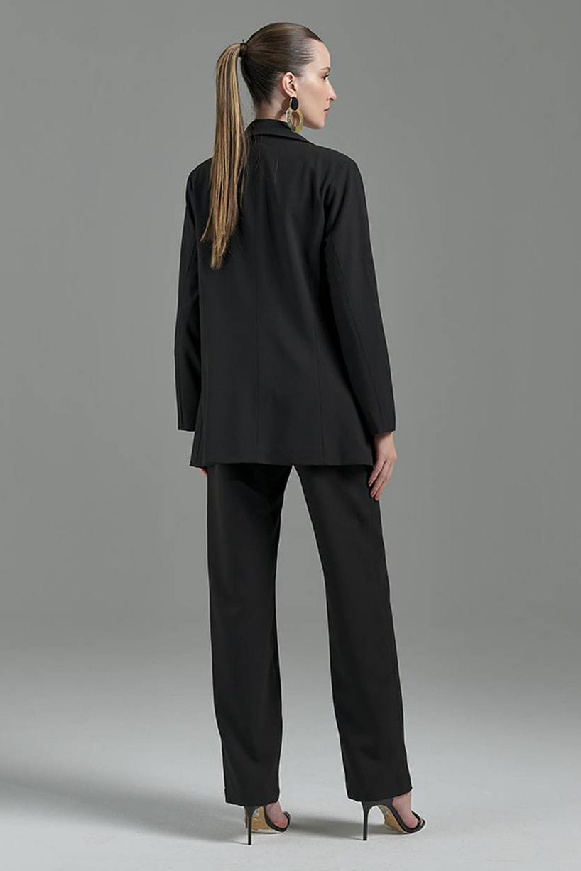 Características do tecido: Destaca-se por sua textura suave e encorpada, que resiste bem ao uso contínuo sem perder o aspecto de novo. O forro com elastano proporciona flexibilidade e liberdade de movimento, enquanto o poliéster garante durabilidade e fácil manutenção, preservando a estrutura refinada por mais tempo.