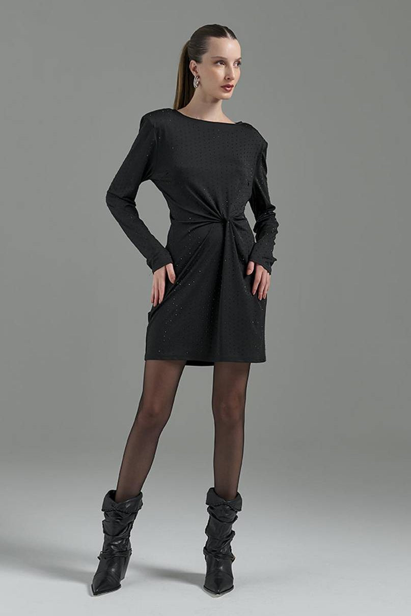 O vestido curto de mangas longas redefine o minimalismo com um design inteligente: o detalhe de enrosco na cintura cria um drapeado que esculpe a silhueta com extrema sofisticação. Ideal para quem busca versatilidade, transita com elegância de eventos informais a ocasiões formais, garantindo um caimento impecável e durabilidade. É a peça-chave para um visual luxuoso e atemporal, adaptável a diferentes estilos e acessórios.