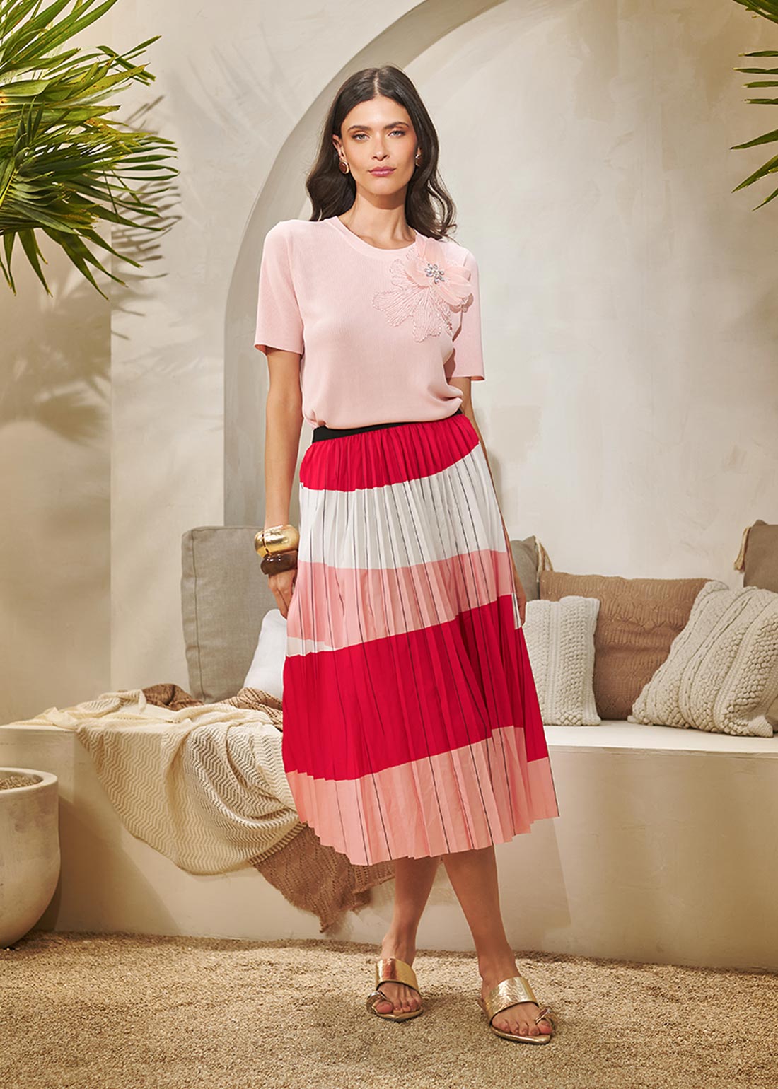 Blusa confeccionada em tecido tricot. Essa peça possui decote redondo, mangas curtas e linda aplicação em flor. // Composição: 65%Viscose 35%Poliamida // Características do tecido: Toque macio e excelente caimento. Vantagens: Maleável, durável e confortável. // Ideal para eventos casuais e informais. //