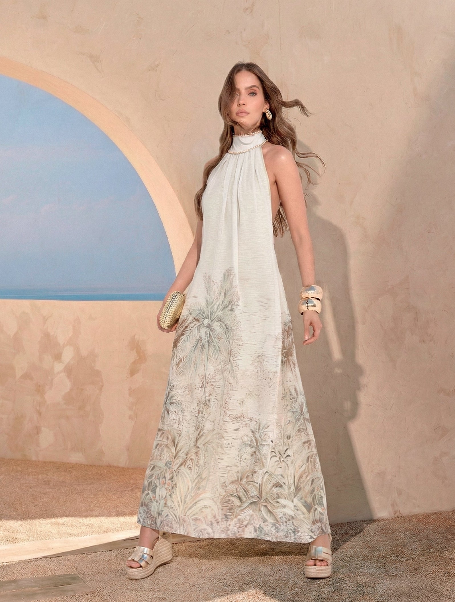 Vestido confeccionado em tecido silky biscuit. A peça conta com estampa exclusiva, criada pela nossa equipe de design, garantindo originalidade e identidade única da marca. Modelo frente única, possui gola alta com abotoamento no pescoço, lindo bordado manual em miçangas. Saia alongada e fluída. // Composição: 97%Poliéster 03%Elastano // Características do tecido: Toque macio e excelente caimento. Vantagens: