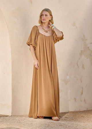 Vestido Pregas E Mangas - Marron 231408MA09