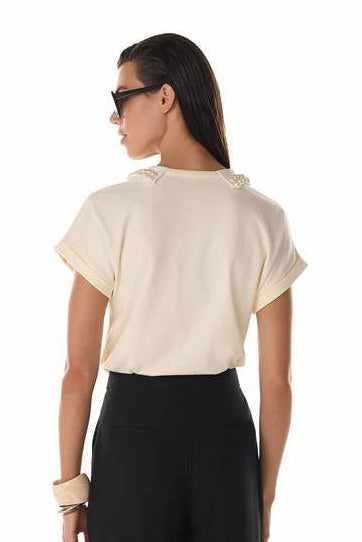 T-shirt Estilizada C/ Perolas - Creme 4115251163