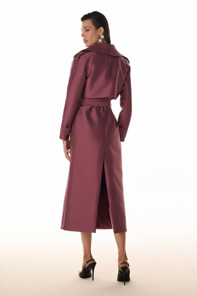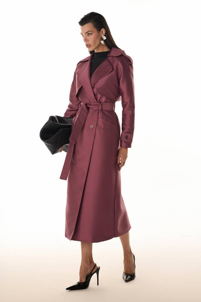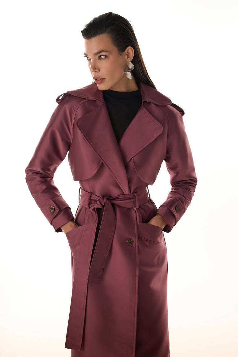 Sofisticação e versatilidade definem este casaco longo feminino estilo trench coat. Com caimento estruturado e durabilidade excepcional, a peça apresenta abotoamento frontal e nos punhos, bolsos laterais funcionais e faixa de amarração para valorizar a silhueta. Um casaco de luxo indispensável, perfeito para garantir conforto e elegância tanto em eventos formais quanto em ocasiões casuais refinadas.