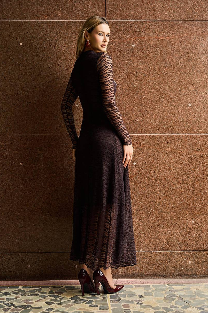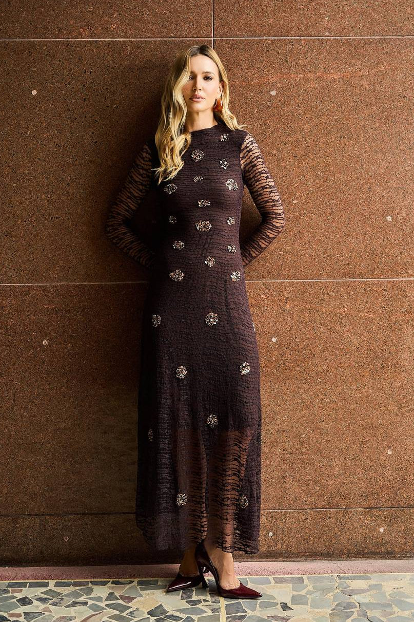 Vestido Em Renda Bordado - Marron 431520MA09